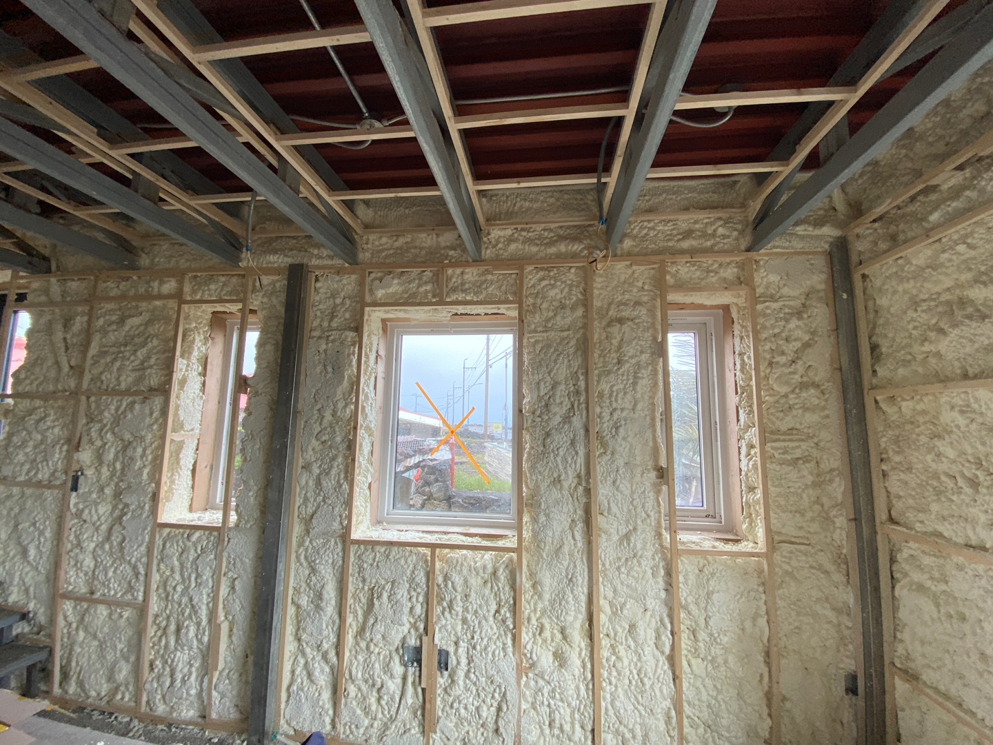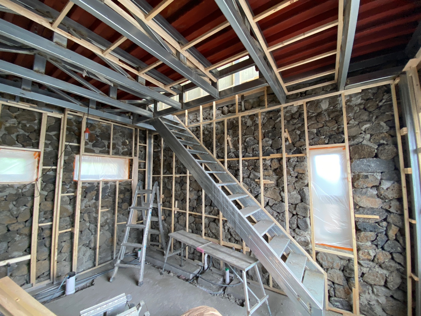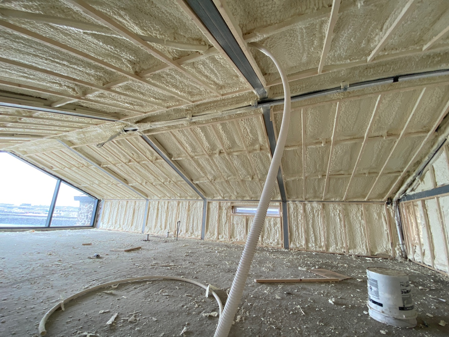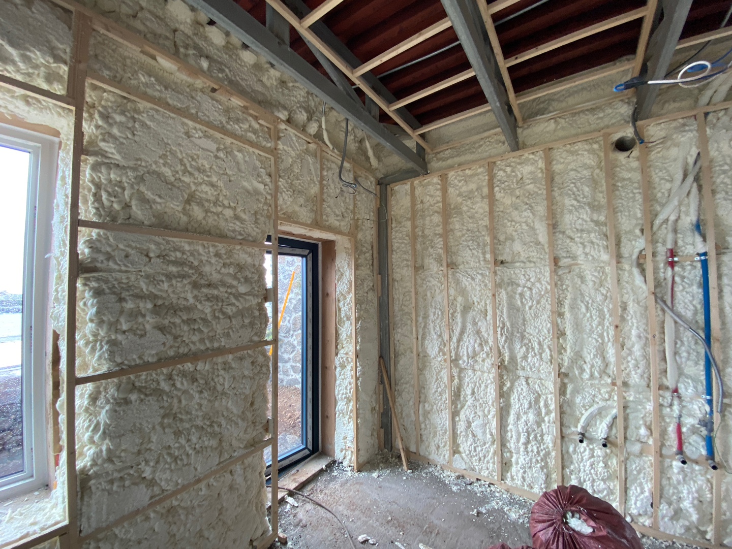 행원리에 신축 중인 돌집의 내부 경질 우레탄폼으로 시공하였습니다.
